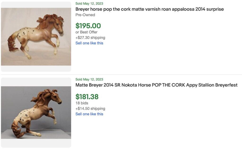 In the Breyer Value Guide, I do not publish speculation but do my best to report the resale values as they are. And try to keep up with the fluctuations. I have been adding eBay sold auction values to some of the rarer model listings. It is a slow process, but as I am recording these values, I am posting a screenshot of the ended listings with their price, and the date of sale. You can see an example of what I am doing with Flamingo’s listing: https://www.breyervalueguide.com/valueguide/flamingo/